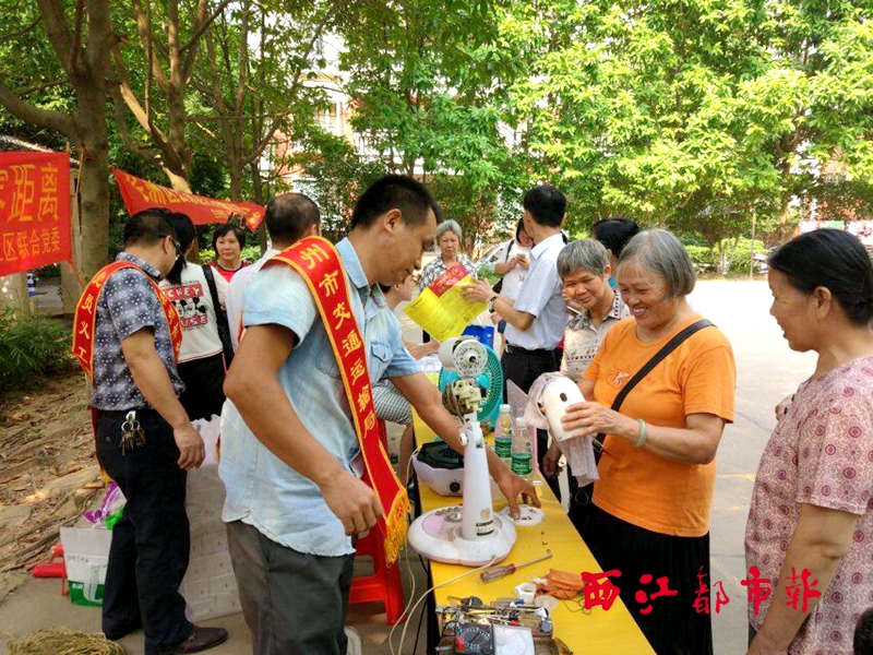 ??? 西江都市報訊 9月23日上午,華洋社區(qū)以聯(lián)合黨校的名義組織了5個“雙報到”單位的35名在職黨員,在社區(qū)會議室上了一堂別出生面的黨課,梧州市交通局局長、黨組書記韋堅等領(lǐng)導參加了本次的黨課學習。課后,在職黨員們來到世紀新城小區(qū),擺攤設(shè)點開展便民維修家電、宣傳云家庭居家養(yǎng)老服務(wù)政策和全面二孩政策,免費發(fā)放藍手環(huán)及安全防范知識小冊子等服務(wù)。