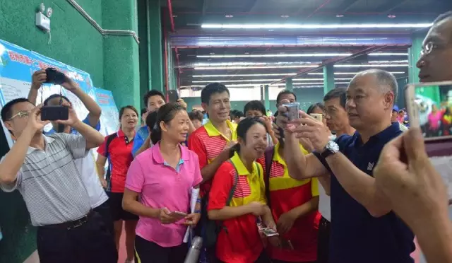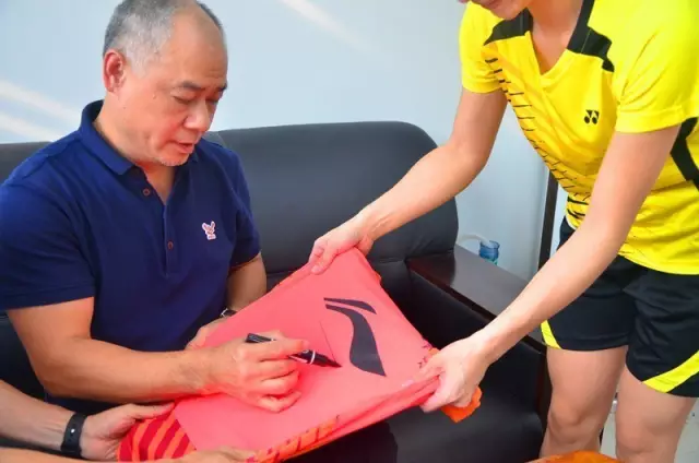 ??? 難得李寧蒞臨梧州,廣大“寧粉”怎么會錯過這個索要簽名的良機呢。趁著空隙時間,市民、運動員、裁判員紛紛拿出球衣、小本子、工作證等物件,向李寧索要親筆簽名,李寧都一個一個很認真地幫簽名。