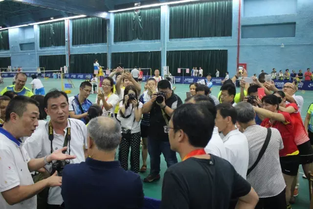 ??? 9月24日下午,在市綜合訓練館里,梧州市第十二屆運動會成年組羽毛球和兵乓球比賽正緊張地進行,一位L姓的奧運會冠軍突然出現,變身為觀眾之一,現場驚喜一片~