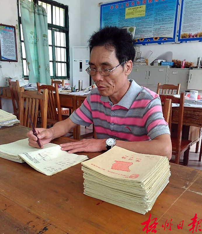 ????在老義中心小學(xué)對岸分校復(fù)式班任教時,他每天來回要步行5公里的山路,遇到雨季溪河澇水上漲時,因?yàn)樵摲中V挥兴粋€教師,所以他只好分批護(hù)送學(xué)生放學(xué),甚至背學(xué)生過河,以確保學(xué)生的人身安全。曾有一次,一個學(xué)生在上課時突發(fā)高燒,而本地附近沒有村醫(yī),他安排好小班干管班之后,便背著患病學(xué)生到3公里外的村衛(wèi)生所就診。