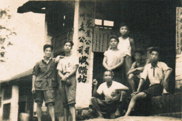 1953年,梧州茶廠7位參與擴(kuò)建六堡茶原料收購(gòu)站的人員在收購(gòu)站前合影。(何志強(qiáng)提供)
