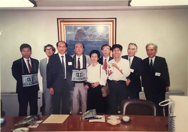 1987 年9 月,廣西茶葉進(jìn)出口梧州分公司的茶葉出口小組出訪日本,參加喜誠(chéng)株式會(huì)社舉辦的六堡茶研討會(huì),并與日方研討人員合影。(記者楊麥翻拍)