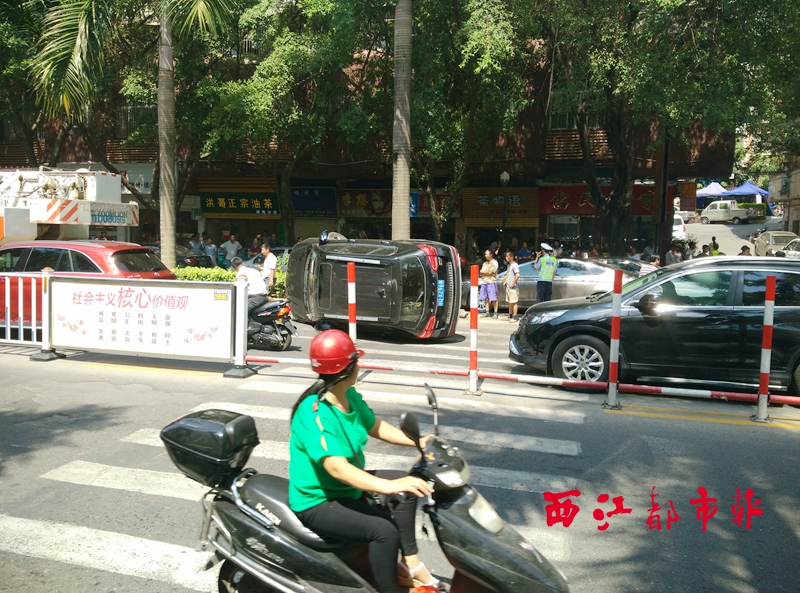 ??? 西江都市報(bào)訊(見(jiàn)習(xí)記者 陳雨燕)9月25日12時(shí)30分左右,長(zhǎng)洲區(qū)新興二路廣西電網(wǎng)梧州110千伏大塘變電站對(duì)出斑馬線處發(fā)生一起交通事故,一輛黑色小車撞上路邊花基導(dǎo)致車輛側(cè)翻,幸未造成人員傷亡。由于事故發(fā)生地點(diǎn)位于主干道,且發(fā)生時(shí)正值午間出行高峰,因此,事故導(dǎo)致新興二路交通造成一段時(shí)間的堵塞。