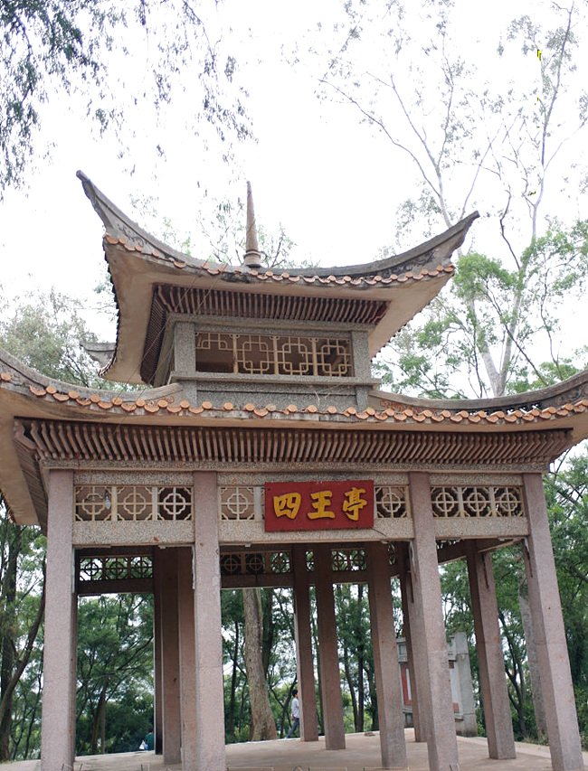 ????紀(jì)念館前種有高大的榕樹和秋楓樹各一棵,這兩棵樹均挺拔偉岸,濃蔭蔽日,沒有兩三個(gè)人合圍不過來,據(jù)說已有120年左右的樹齡。紀(jì)念館里除了供奉“四王”外,正中間供奉著的卻是“石勞大皇”三兄弟,這讓我們感到有些奇怪。