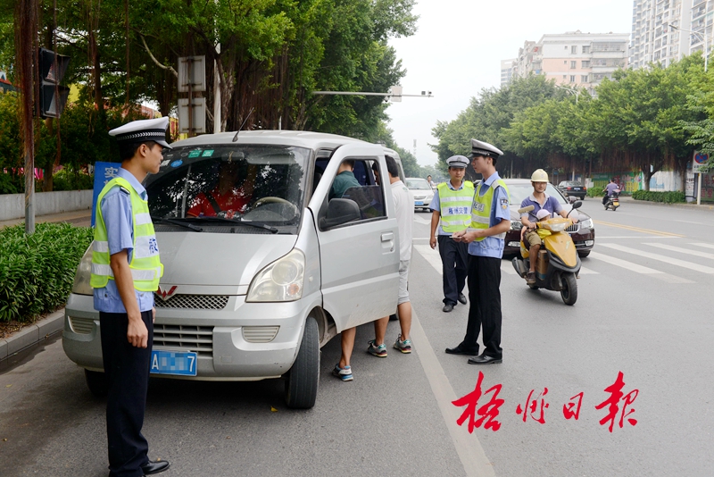 ????9月21日,市公安局交警支隊長洲大隊民警在西堤三路查處交通違法車輛。