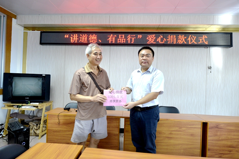 ??? 9月27日下午,珠山社區(qū)舉行愛(ài)心捐款儀式,向困難家庭韋觀德送上愛(ài)心捐款11130.5元。