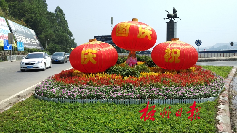 ????9月27日,在云龍橋頭轉盤處,采用鮮花和紅燈籠組成的國慶主題景觀布置完成,增添了節日的喜慶氣息。