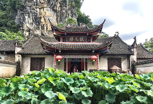 ????“狀元樓”實際是一座類似梧州龍母廟般的二進廟式庭院,就在“獨秀峰”的前面,但比龍母廟的規模小得多。它的正門旁掛著三塊牌,分別是“朝東鎮黨員干部教育培訓基地”,“富川高中優秀傳統文化教育基地”以及“共青團關愛農民工子女志愿服務基地”。