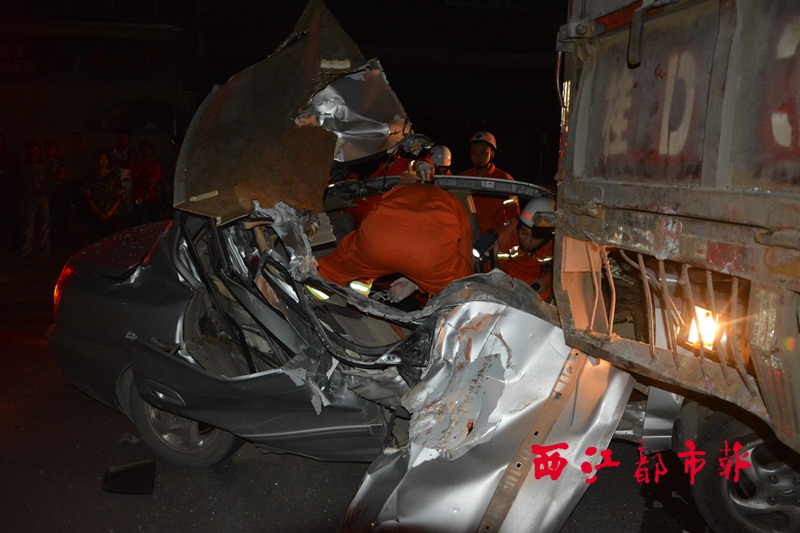 ????結(jié)合現(xiàn)場情況,消防官兵立即展開救援行動(dòng),利用破拆工具對(duì)已經(jīng)變形小轎車進(jìn)行破拆,并與現(xiàn)場交警對(duì)事故路段進(jìn)行局部管制。經(jīng)過20分鐘的緊張救援,消防官兵順利將坐在小轎車副駕駛和后排位置的兩名男子救出,但經(jīng)醫(yī)護(hù)人員現(xiàn)場確認(rèn),兩人已無生命跡象。