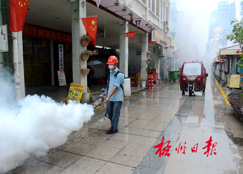 ????10月19日,在五坊路,工作人員正在噴灑殺蟲噴霧。 日前,市愛衛辦在市區范圍全面開展除“四害”活動,相關滅蟲工作部門開始在各主要街道、小街巷的排水通道噴灑滅蟲噴霧劑,滅殺蚊蟲和蟑螂。 李鴻榮 攝