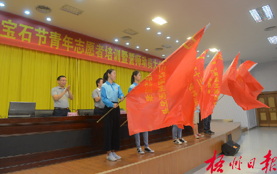 ????動員大會還為青年志愿者代表授旗。據了解,10月27日開始,300名志愿者將赴寶石節各個崗位開展志愿服務工作。