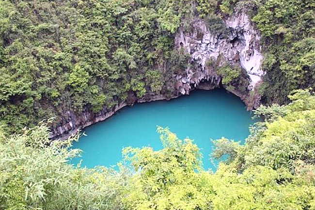 ????三門海原名叫“水源洞”,位于河池市鳳山縣袍里鄉坡心村,坡心在狀語里的意思是“大山的中心”。 三門海的水藍得不可思議,雖說來到三門海,顧名思義,是為了看“海”而來,但你可曾想過步行至山頂俯瞰整個三門海?在山頂上,你甚至能夠見到更多行船無法到達的天窗海子。每一個海子的上空山峰上都會有觀光亭,從觀光亭看下去,便能看到那些如夢似幻的海子。登高雖然不能身臨其境,但卻也是欣賞三門海的一種角度。站在山巔,可以看見一汪汪碧綠的海子被綠樹掩映著,猶如翡翠一般動人……