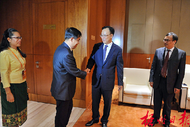 ????市領導張學軍、謝凌云、黎永益、黃恩,越南駐南寧總領事館領事阮國龍、老撾駐南寧總領事館副領事孔發占·展達翁、泰國駐南寧總領事館領事陳大偉等參加了會見。