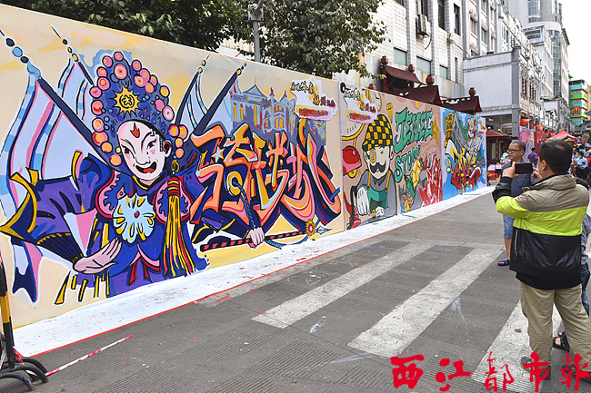 ????“希望市民、游客能夠通過我們的作品,感受到我們的創作熱情與活力,并從中了解梧州文化不一樣的魅力所在。”來自梧州學院的學生朱甜甜是主創者之一,她向記者介紹,參與此次涂鴉創作的共有12名梧州學院的學生,他們都是學校“九零涂鴉社”的成員,參加活動不但激發了大家的創作靈感,更可以通過這種形式展現梧州文化,感覺“成就感滿滿”。