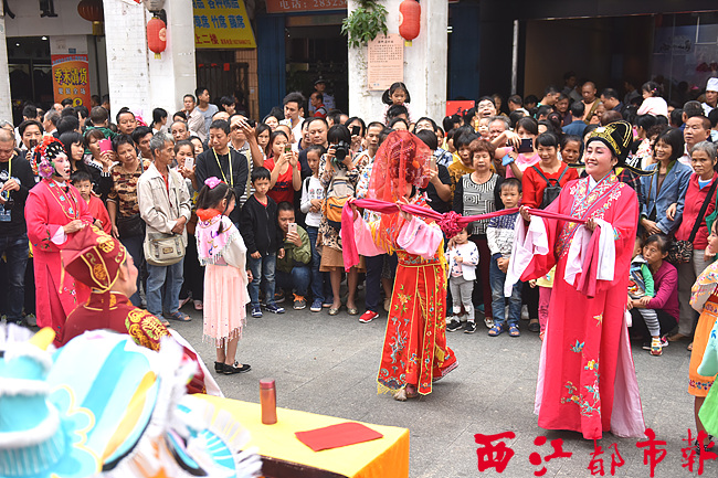 展示傳統中式嫁娶風俗的粵劇情景諧劇《搶花轎》在快閃活動中上演。
