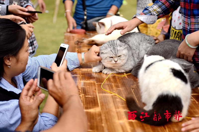 ??? 10月30日,市民們和展出的名貓近距離接觸。當(dāng)日,梧州多個(gè)養(yǎng)貓愛好者相約一起來(lái)到長(zhǎng)洲區(qū)農(nóng)耕文化園內(nèi)聚會(huì),集中展示自己的“愛寵”,讓市民和游客可以近距離接觸這些性格溫柔、樣子可愛的貓咪。愛好者展出的名貓品種有咖啡貓、英國(guó)短毛貓、泰國(guó)暹羅貓、布偶貓等,展示活動(dòng)受到了市民和游客的歡迎。
