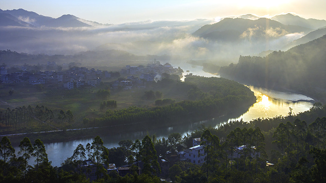 ????水秀灣環抱著的水秀村曾是著名的古戰場。1851年,太平軍在這里進行永安州保衛戰,與清兵激戰半年之久,附近的山嶺至今還保存著許多營盤和地洞遺址。村上的水秀老街以前曾是古官道上的重要集市,清朝時代便商賈云集,老街上尚遺留著的青石板街道和店鋪,見證著當年的繁華。這里還保留著一個古老的村渡,村民過往湄江依然喜歡坐渡船,即使村旁修建了過河大橋,也不影響到渡船的存在。