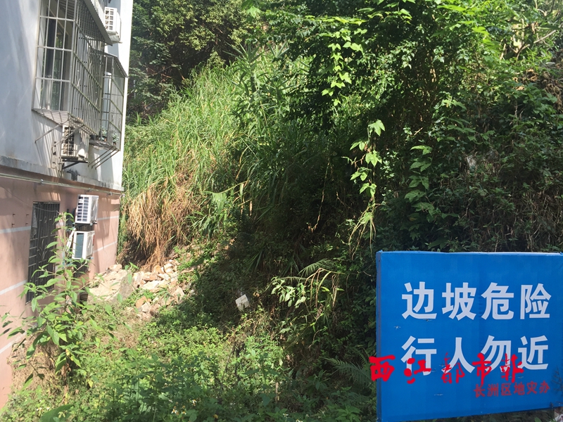 ????在山體面向道路的一側,長洲區地災辦設置了一塊寫有“邊坡危險行人勿近”字樣的警示牌。王女士告訴記者,去年4月發生山體滑坡后,曾有一些部門的工作人員前來現場查看情況,但至今還沒有任何要動工修復的跡象。居民曾多次向有關部門反映,一直得到的都是“等資金落實后立即處理”的答復。