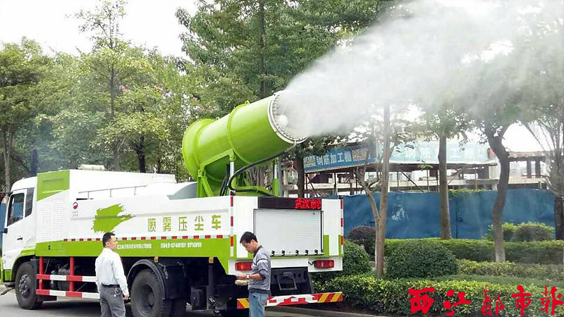 ????11月3日,一輛噴霧壓塵車(又稱“霧炮車”)在玫瑰湖公園周圍緩慢行駛,為周邊路段降塵、清掃路面。據介紹,該種噴霧壓塵車能遠距離噴霧降塵,采用高效軸流風機風幕技術,射程遠、高,穿透性好,霧粒附著力強,霧量沉降率可達到95%。此外,它還具備灑水和道路沖洗的功能,有效抑制揚塵。