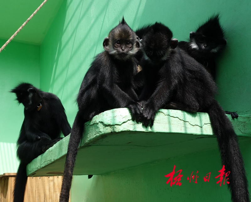 ????據(jù)了解,黑葉猴屬于國際E級瀕危珍稀靈長類動物,是我國一級保護動物,主要分布在廣西、貴州少數(shù)石山地區(qū)。梧州市從1973年開始人工飼養(yǎng)黑葉猴,1977年誕生了世界第一代人工飼養(yǎng)繁殖的黑葉猴,1991年建立了黑葉猴珍稀動物繁殖中心。目前,該中心擁有世界上最大的黑葉猴繁殖種群,人工飼養(yǎng)繁殖黑葉猴水平處于世界領(lǐng)先地位。
