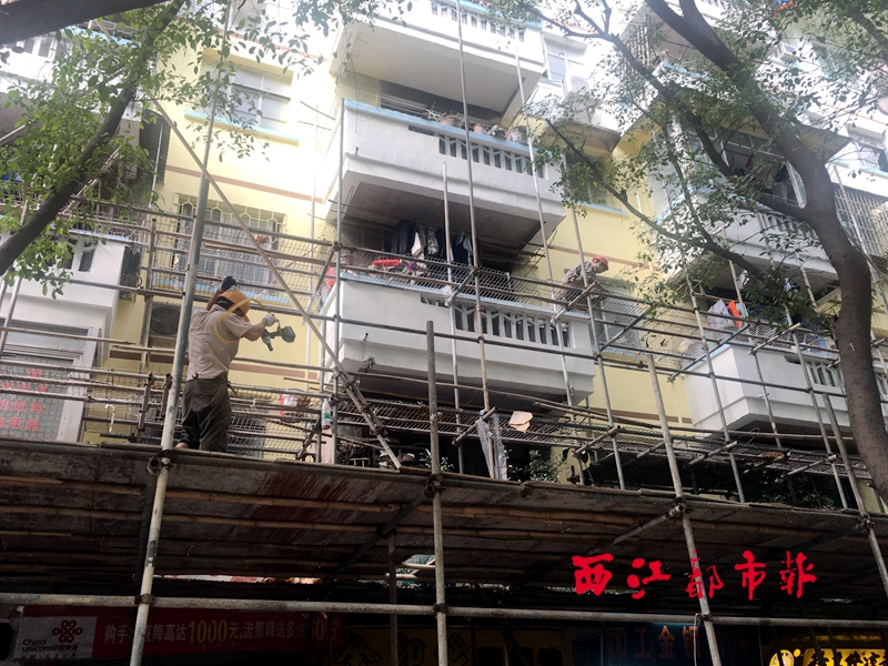 ??? 11月13日,東山沖片區棚改項目施工現場,一棟樓房正在拆除腳手架。據悉,截至11月11日,東山沖棚戶區改造工程已有27棟樓房完成立面改造并拆除外架,14條道路完成改造維修或新建。目前,棚改項目的綠化、排水改造等工作正在有序進行。 (西江都市報記者 謝韻 通訊員 蔣亞平 攝影報道)