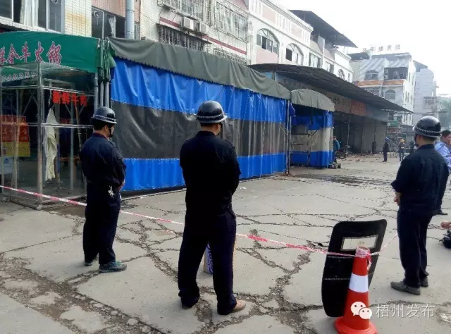 ??? 當日上午9時左右,長洲區商務局、城監、消防、公安等多部門的執法人員,在兩廣市場C區9棟的一列物流商鋪外匯合,疏散好商鋪內的工作人員后,開始對商鋪門口外違規搭建的兩面墻以及大遮雨棚進行強制拆除。