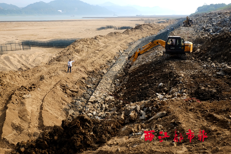 ????11月17日,記者來到位于萬秀區(qū)塘源村大戶組的塘源防洪堤Ⅰ標段工地看到,數(shù)輛挖掘機同時開工,正對堤岸的斜坡進行修整。在15米高程以下低水位岸坡,施工工人們正在進行格賓網(wǎng)石籠護坡施工,進一步加固防洪堤護腳;而在15米以上較高水位區(qū)域,一批工人在岸坡處鋪設互鎖磚。