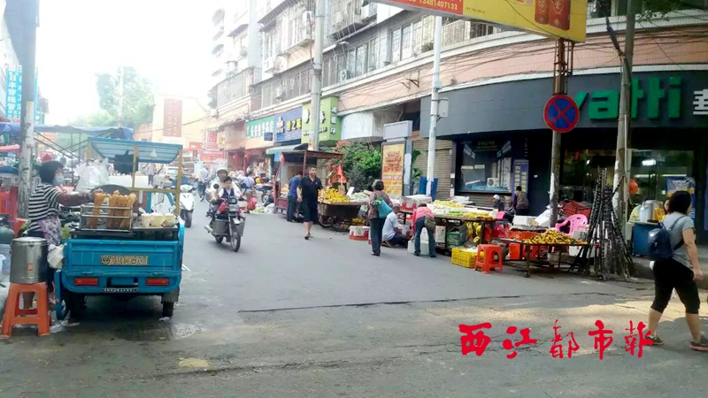 ?11月17日上午,恒祥花苑二期大門對出道路,有多個流動攤檔。 (西江都市報記者 紀榮蘭 攝)