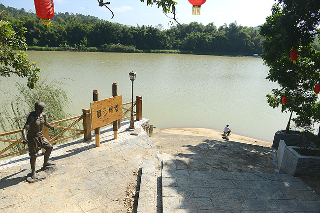 ????深秋時節(jié),流經南渡鎮(zhèn)區(qū)而過的黃華河仍宛如一條綠色長廊,一河兩岸漫山遍野的竹林,呈現的是一幅“竹林倒影水浮山”的畫面。位于黃華河道上的百年古碼頭擔水渡邊上,年近六旬的吳萬強正悠然垂釣,享受這份秋日里的恬靜。作為南渡鎮(zhèn)連接上游水汶鎮(zhèn)、大隆鎮(zhèn)的唯一水上交通樞紐,擔水渡歷經了數百年的歷史滄桑,由青磚石線鋪砌而成的石級路面,至今仍保留著明清時期的道路風格。“過去每逢圩集,商船、貨船、竹筏云集,最多時達100多條,非常繁榮,在碼頭上當搬運工的工人就有100多人。”而如今,擔水渡在保留原有歷史韻味的基礎上,建起了休閑平臺,修葺一新,令從小在南渡長大的吳萬強不由為之感嘆。