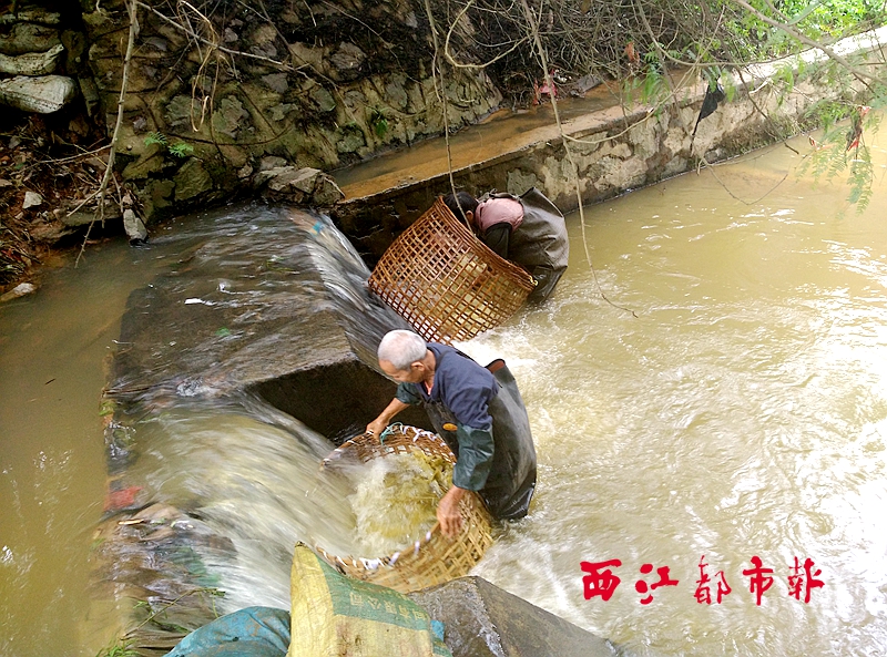 ?11月27日,交村的兩位村民在村內的溪水中清洗玉蘭樹葉。
