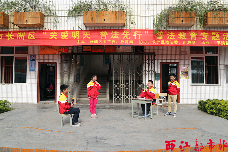 ????12月6日上午,平浪希望小學(xué)的學(xué)生正在表演法制小品劇《法律呵護(hù)陽(yáng)光少年》。當(dāng)天,由長(zhǎng)洲區(qū)關(guān)工委、長(zhǎng)洲區(qū)教育局、長(zhǎng)洲區(qū)政法委和長(zhǎng)洲區(qū)司法局組織開(kāi)展的“關(guān)愛(ài)明天 普法先行”普法教育專題活動(dòng)在平浪希望小學(xué)舉行。