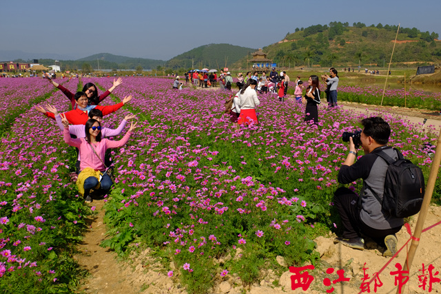 12月10日,市民在花海中游玩、留影,樂而忘返。近日,位于夏郢鎮的梧州市萬秀區思良江休閑農業(核心)示范區內,各種顏色的格桑花開滿花田,形成漂亮的“花海”,吸引了眾多游客前來游玩。 本報記者 何 鎏/攝