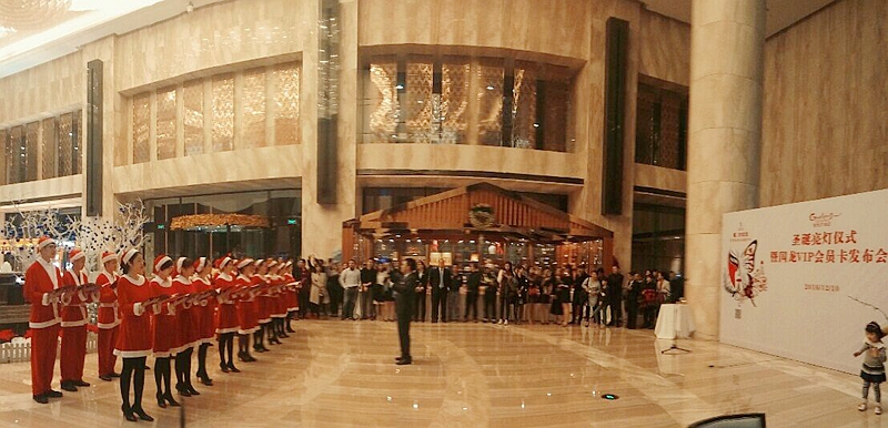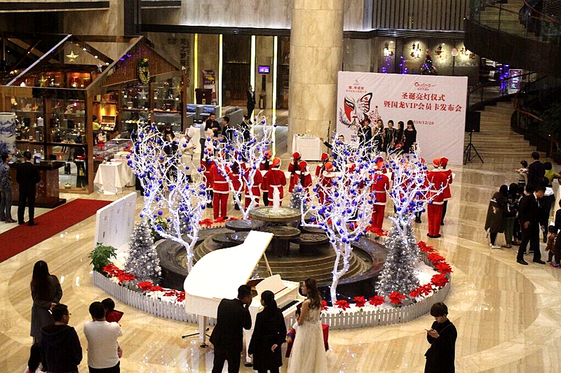 ??? 12月10日晚上,國龍大酒店舉行了“圣誕亮燈儀式暨國龍VIP會員卡發布會”,活動現場嘉賓眾多,唱詩班精彩的表演引來陣陣掌聲,精美的點心讓人垂涎欲滴,優美的琴聲引人入勝,人人臉上洋溢著微笑,氣氛溫暖而熱烈。