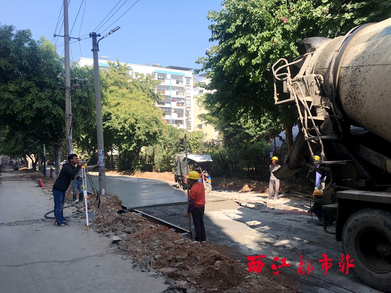 ????12月12日,記者在太和路瑞東樓附近看到,工人們正在對此前剛澆灌的混凝土路面進行保養。不遠處,另外幾名工人正在進行路面硬化的前期工作。