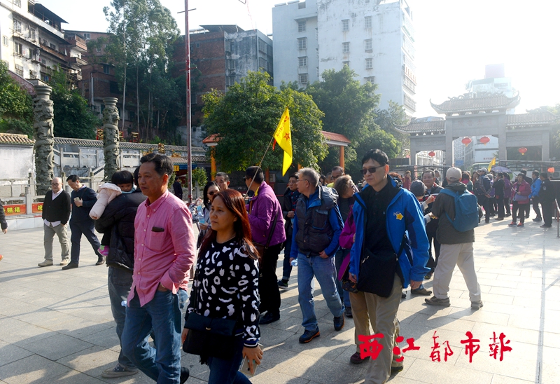 ????12月15日,來梧旅游的香港游客在龍母廟游玩。