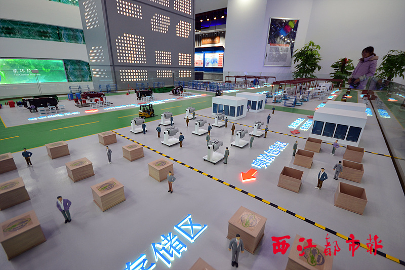 ????12月16日,在梧州國(guó)家再制造產(chǎn)業(yè)示范基地的國(guó)際再制造展示廳內(nèi),市民正在觀看基地的建筑模型。