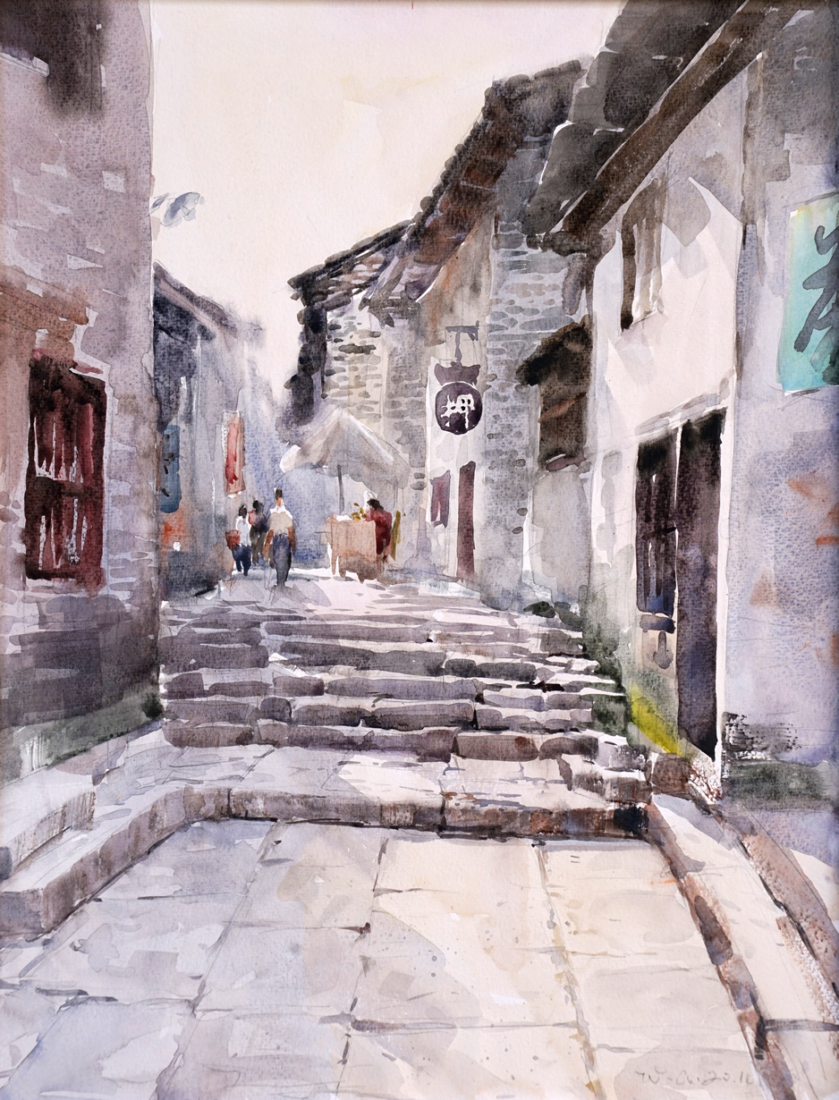 古鎮(zhèn)幽巷(水彩畫)
