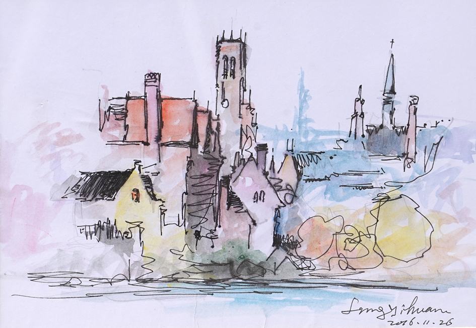 域外寫生(鋼筆淡彩)