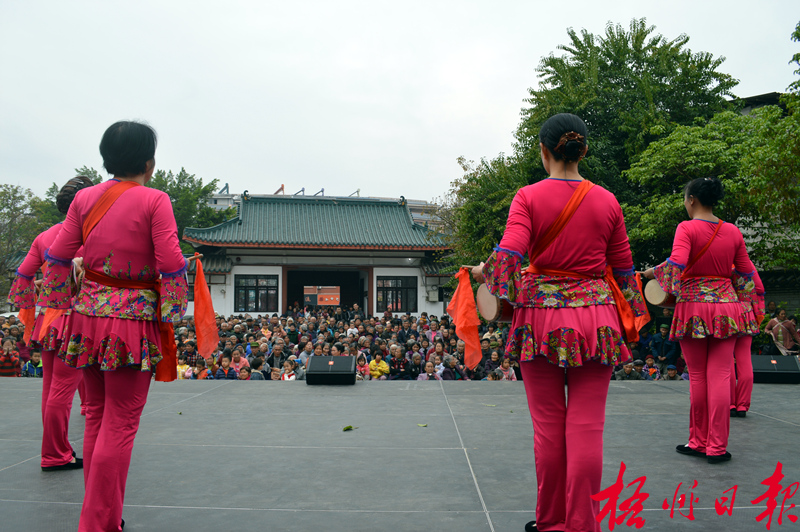 1月1日,在蒙山縣梁羽生公園,市民群眾正在觀看文藝演出。當日,該縣舉行文藝調演演出慶新年活動,該縣文藝團體自編自導的彩調、歌舞、小品、快板等文藝節目相繼登場,贏得了現場觀眾的陣陣掌聲。 戴連升 攝