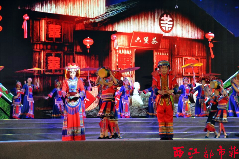 據(jù)了解,《六堡茶歌》是由廣西戲劇院和蒼梧縣文化館共同打造的大型歌舞劇,全劇共分為四幕,分別為《春·雨潤(rùn)茶香》《夏·幸福滿懷》《秋·茶純情濃》《冬·傳承感恩》,由140名演員共同演繹。演出當(dāng)晚,兩個(gè)多小時(shí)的歌舞表演精彩紛呈,充滿地域特色的服裝、歌曲,色彩絢麗的舞臺(tái)燈光,吸引了眾多市民觀看。