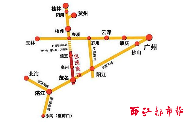 ????西江都市報訊 (記者 黃海志 通訊員 潘德宏) 1月5日,岑溪至水汶高速公路建成通車,為廣西再添一條通粵出海的快捷大通道,梧州前往廣東茂名、湛江等地的車程縮短至三小時左右。
