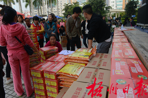 活動中,愛心單位黨組織、愛心企業現場為來自萬秀區、長洲區的多戶貧困戶、貧困兒童家庭以及藤縣埌南鎮冼村、黎寨村、長洲區倒水鎮三貴村等一批貧困村進行了捐贈,為困難群眾送去糧油、毛毯、面食、文具等生活物品和學習用品。東興街道蝶彩社區的彭熹小朋友就與媽媽一起領到了多種生活物資,小小的她臉上有了溫暖的笑容。來自單親家庭的她告訴記者,媽媽一人靠打工維系一家人的開支,收入不穩定,家里的生活壓力比較大,“在春節前收到實用的生活用品,媽媽和我都感到很開心,很溫暖”。