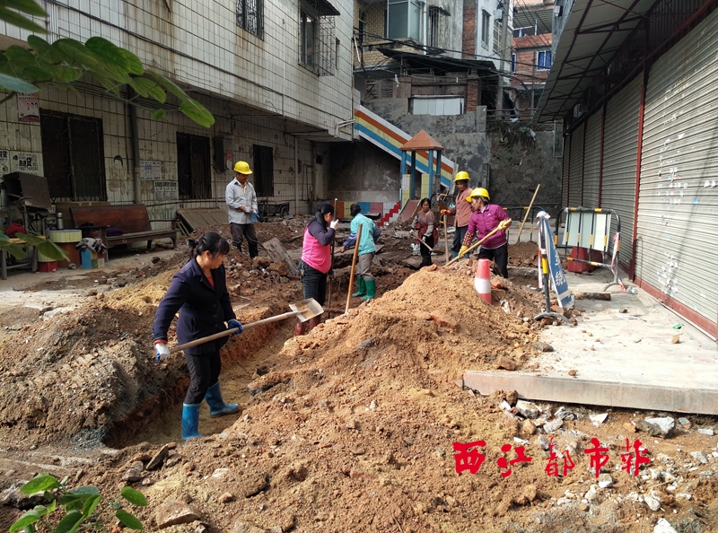 ??? 1月9日,梧州市太和路的一條小巷,工人正在挖掘舊的路面。