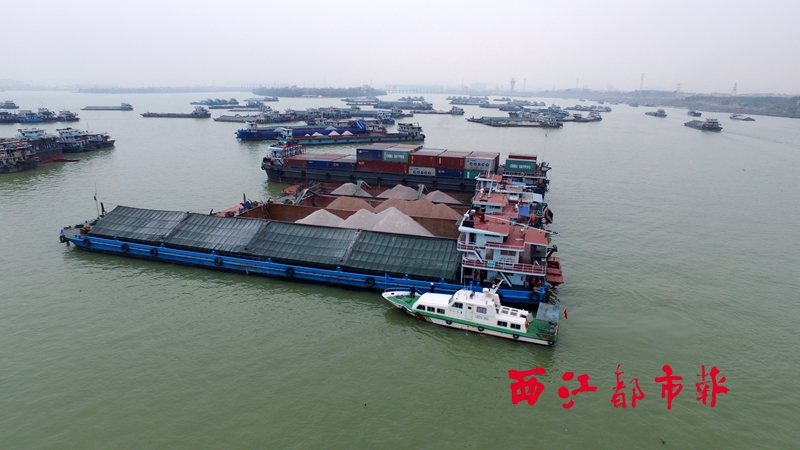 1月10日,大量船舶待閘長洲。連日來,受西江上游干旱少雨的影響,長洲船閘下游水位逐漸走低,致使大量運載船舶受到較大影響。1月10日,梧州市西江黃金水道通航突發事件指揮部啟動了西江黃金水道通航突發事件應急Ⅳ級響應。截至1月11日上午8時,梧州航道站水位2.92米,長洲樞紐待閘船舶共419艘,其中下航274艘,上航145艘。 童鯤 攝