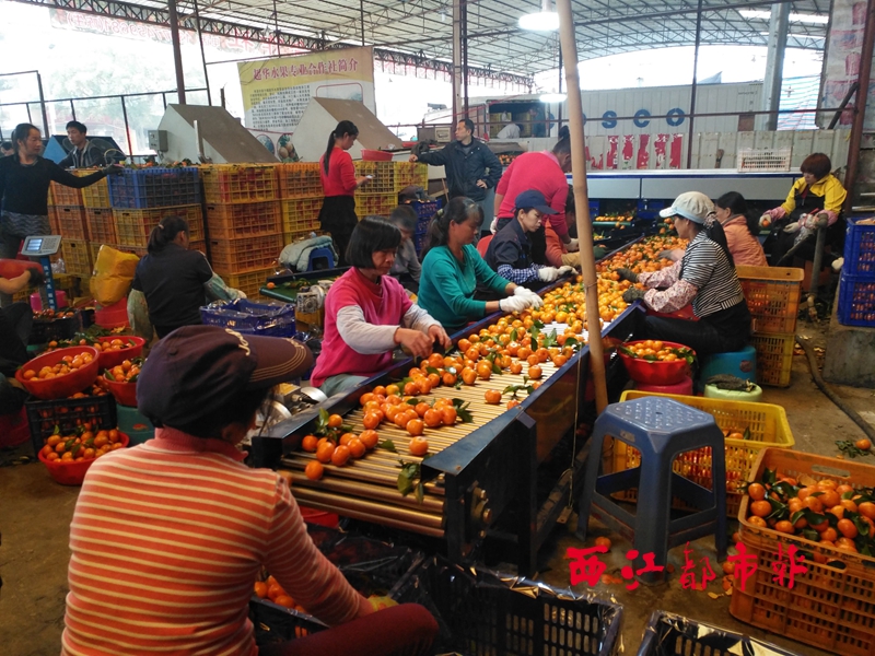 ????為了提高砂糖橘的效益,筋竹鎮砂糖橘銷售市場內的代售點還對砂糖橘進行分級,以不同的價格售出砂糖橘?!耙患壒话隳苜u7.6元~8.4元/公斤,二級果則是5.6元~6.4元/公斤。”筋竹鎮的清源水果專業合作社負責人嚴勇表示,為了幫助當地合作社實現自產自銷,他在自己的代售點投資建設了兩條砂糖橘分揀線,分揀出來的一級果銷往北京、上海、杭州等城市,二級果則銷往嘉興、武漢、保定等地。對砂糖橘分等級后,還提高了該代售點的銷售量。目前,通過該代售點銷售的砂糖橘約有1700多噸,比往年增加了33%。