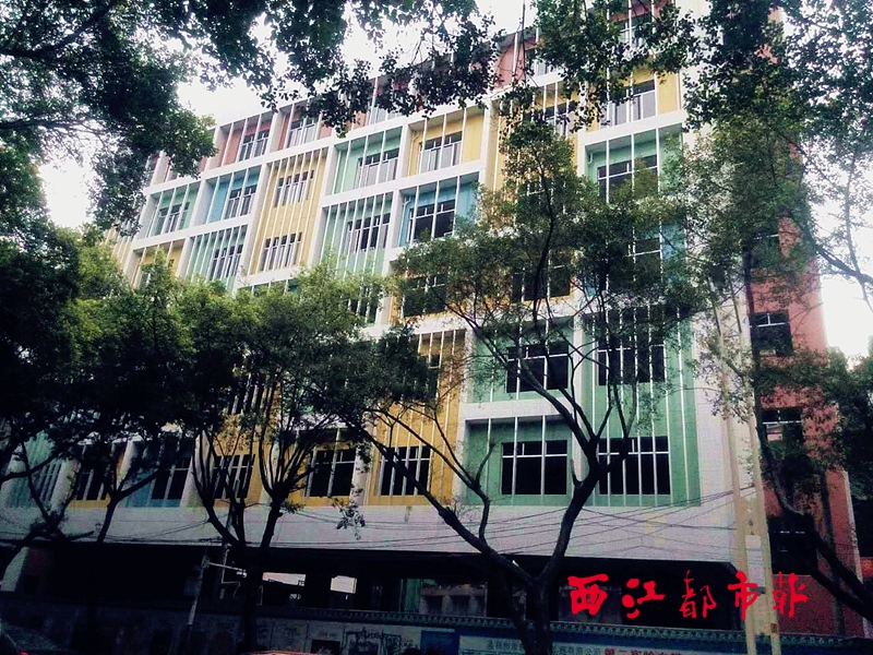 ????西江都市報訊(記者 陳雨燕)近日,梧州市第二實驗小學新教學樓的外墻排柵被拆下,大樓露出了嶄新的外觀。黃藍紅色相間的教學樓美觀大方,連廊連接著兩棟七層的教學樓,方便師生通行。