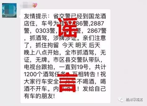 ????雖說這條信息是謠言,但內(nèi)文提到的“開車不喝酒,喝酒不開車”這句話還是對的。年關(guān)將至,聚會又多,親們一定要謹(jǐn)記哦!