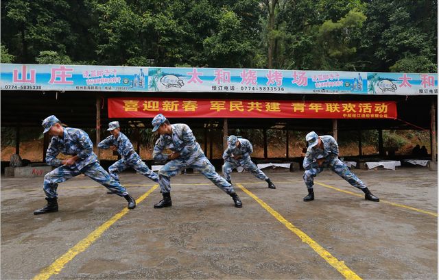 活動首先通過組建團隊、自我介紹的環(huán)節(jié)讓到場青年得以相互認識,隨后,桂船部隊官兵操練展示、軍歌演唱更展現(xiàn)了他們良好的精神風貌。活動通過互動游戲促使每位青年朋友都積極參與其中,為大家營造了輕松而愉快的交友氛圍,搭建了青年人相識相知的情感交流平臺。