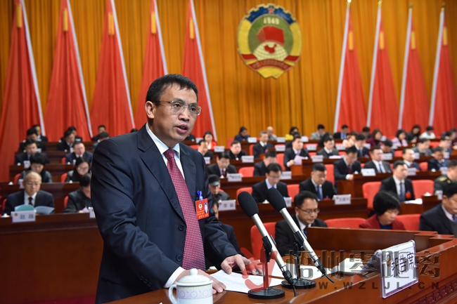 ?梧州市政協主席張學軍代表政協梧州市第十二屆委員會常務委員會,向大會報告常委會的工作。何鎏/攝