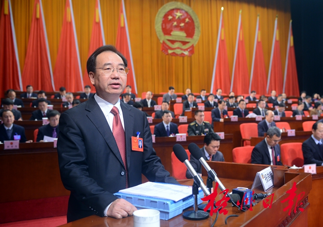 市長朱學慶在市十四屆人大二次會議上作《政府工作報告》。蒙紹松 攝